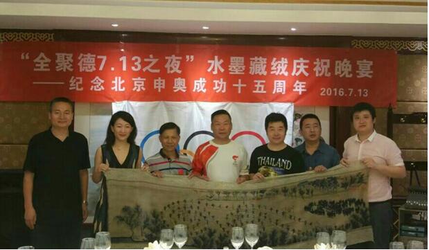 15年前的713,举国欢腾,北京申奥成功百年梦圆。昨天晚上,全聚德奥运村店举办了“纪念北京申奥成功713全聚德之夜”活动,原国家体委副主任张彩珍、中国第七届电视剧飞天奖最佳女主角方青卓、世界滑雪发源地(新疆阿勒泰)发现者、中国第一位滑雪冠军单兆鉴、北京双奥体育公司总经理尤小龙、原国旗班班长赵新风、中国收藏家协会副秘书长李祥、知名奥运收藏家赵晓凯等文体名人出席了晚宴。国内知名羊绒文化企业北京水墨藏绒公司生产的藏绒版“故宫冰嬉图”首次亮相,获得了到场嘉宾的一致好评。