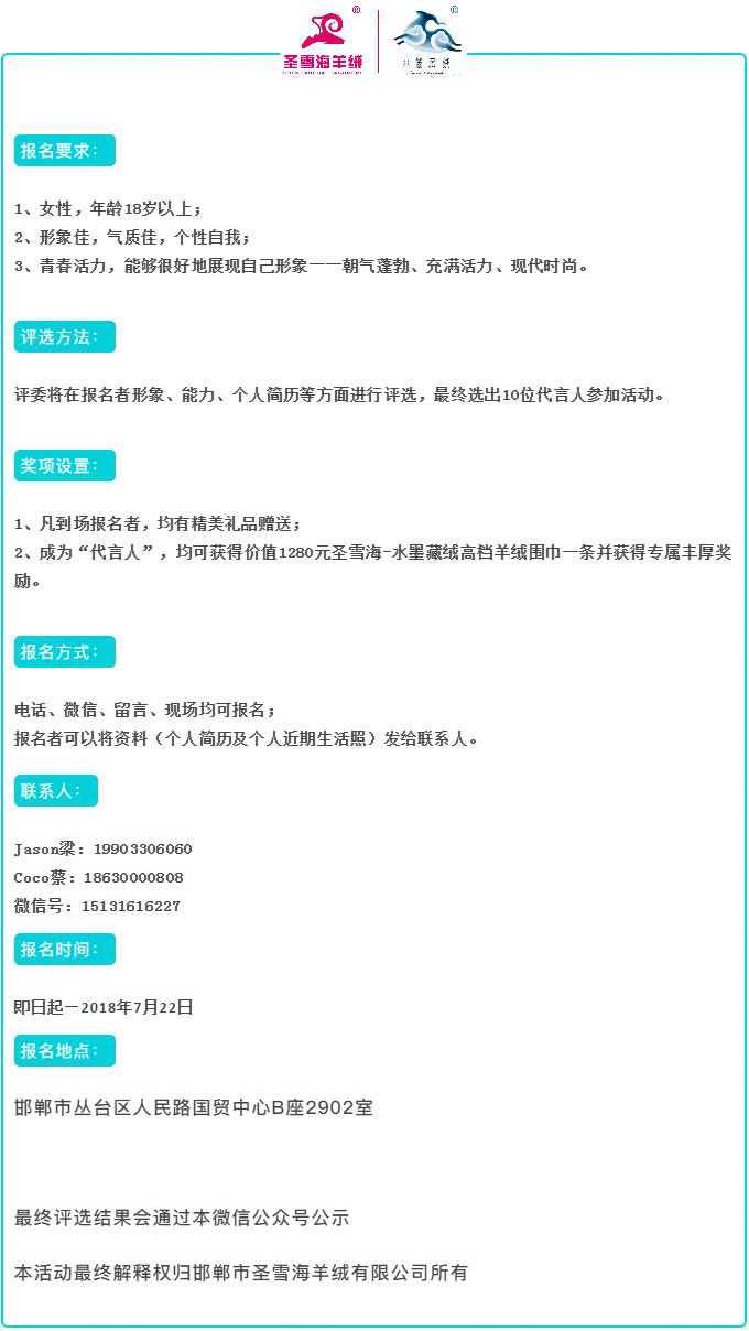 圣雪海免费送羊绒衫啦!!! —寻找圣雪海最美代言人