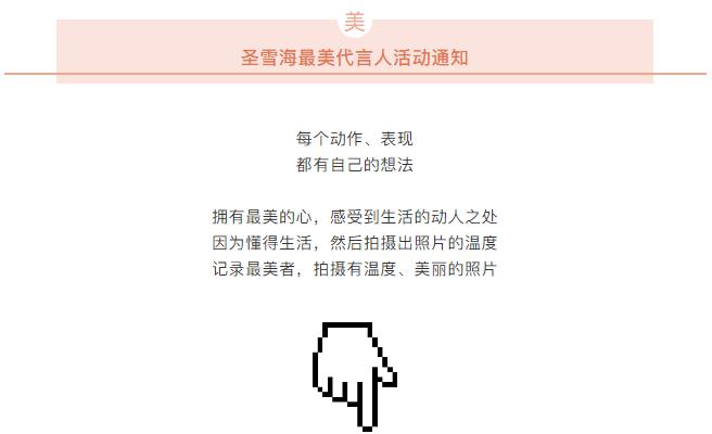 注意啦!!全城寻找“圣雪海最美代言人”活动开启啦!!看看有没有你