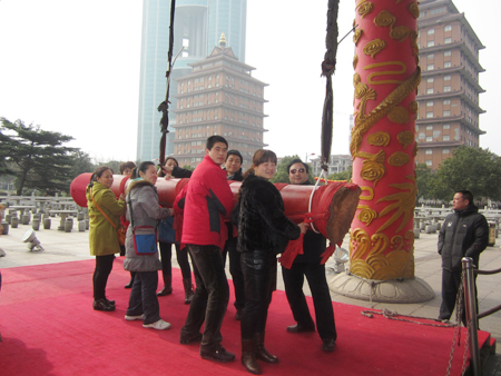 图为圣雪海员工在“天下第一村——华西村”留念!